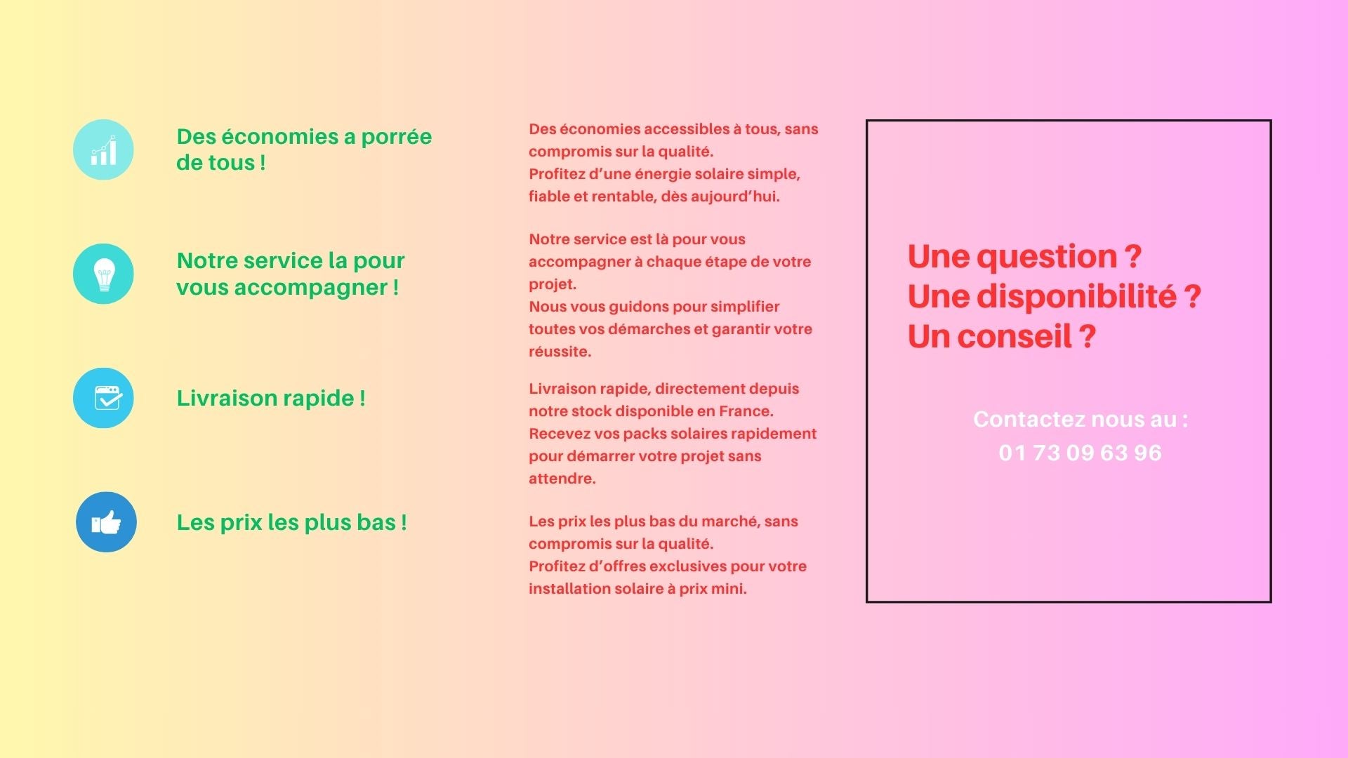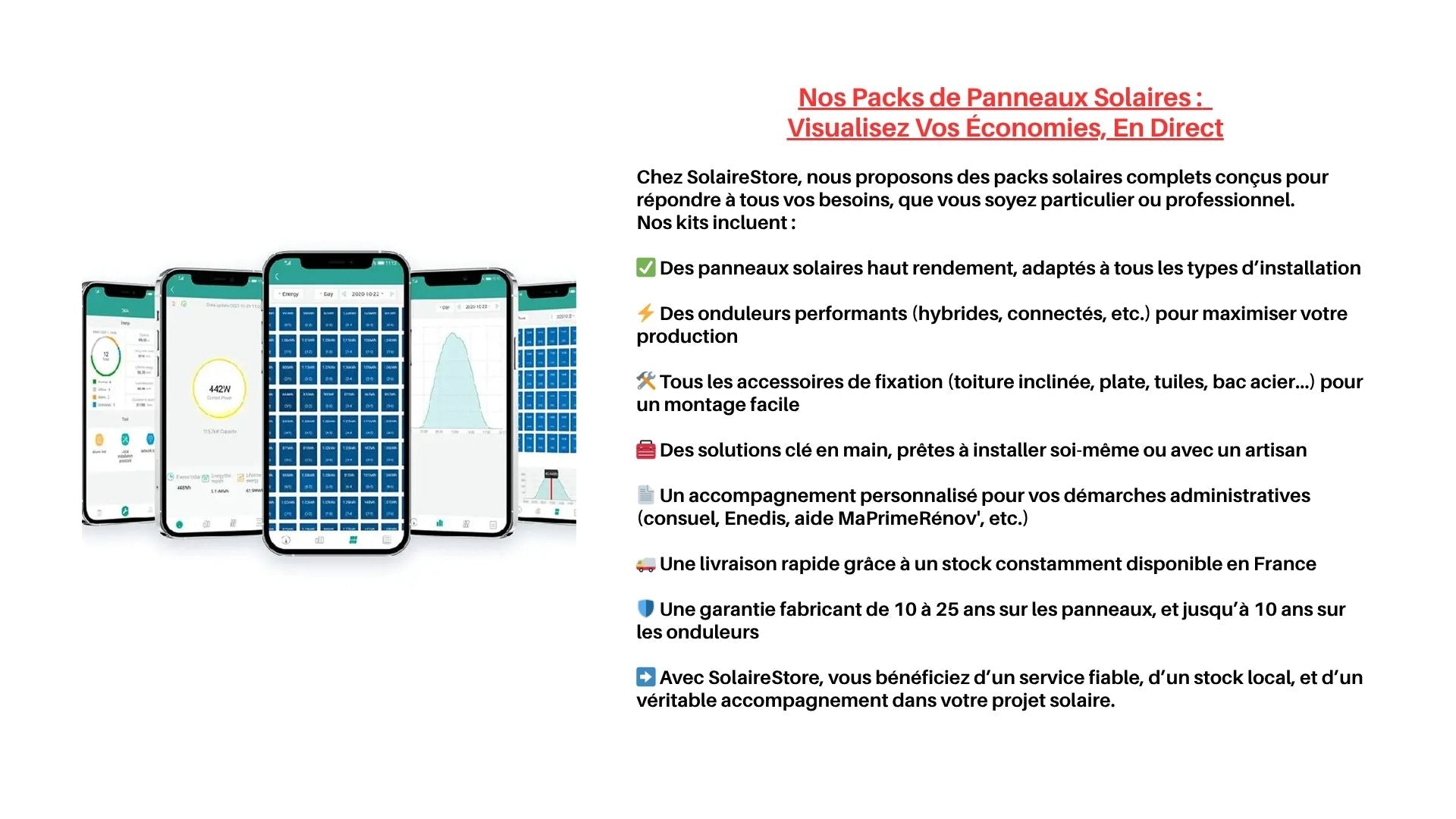Avec SOLARSTORE.FR, vous bénéficiez d’une expertise de confiance pour vos achats en panneaux solaires et accessoires, avec des prix compétitifs, des délais de livraison rapides, et un soutien technique constant.