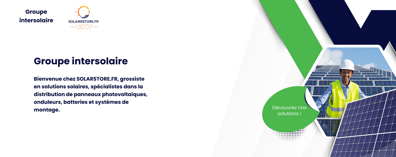 Bienvenue chez SOLAIRSTORE.FR, grossiste en solutions solaires, spécialiste dans la distribution de panneaux photovoltaïques, onduleurs, batteries et systèmes de montage.