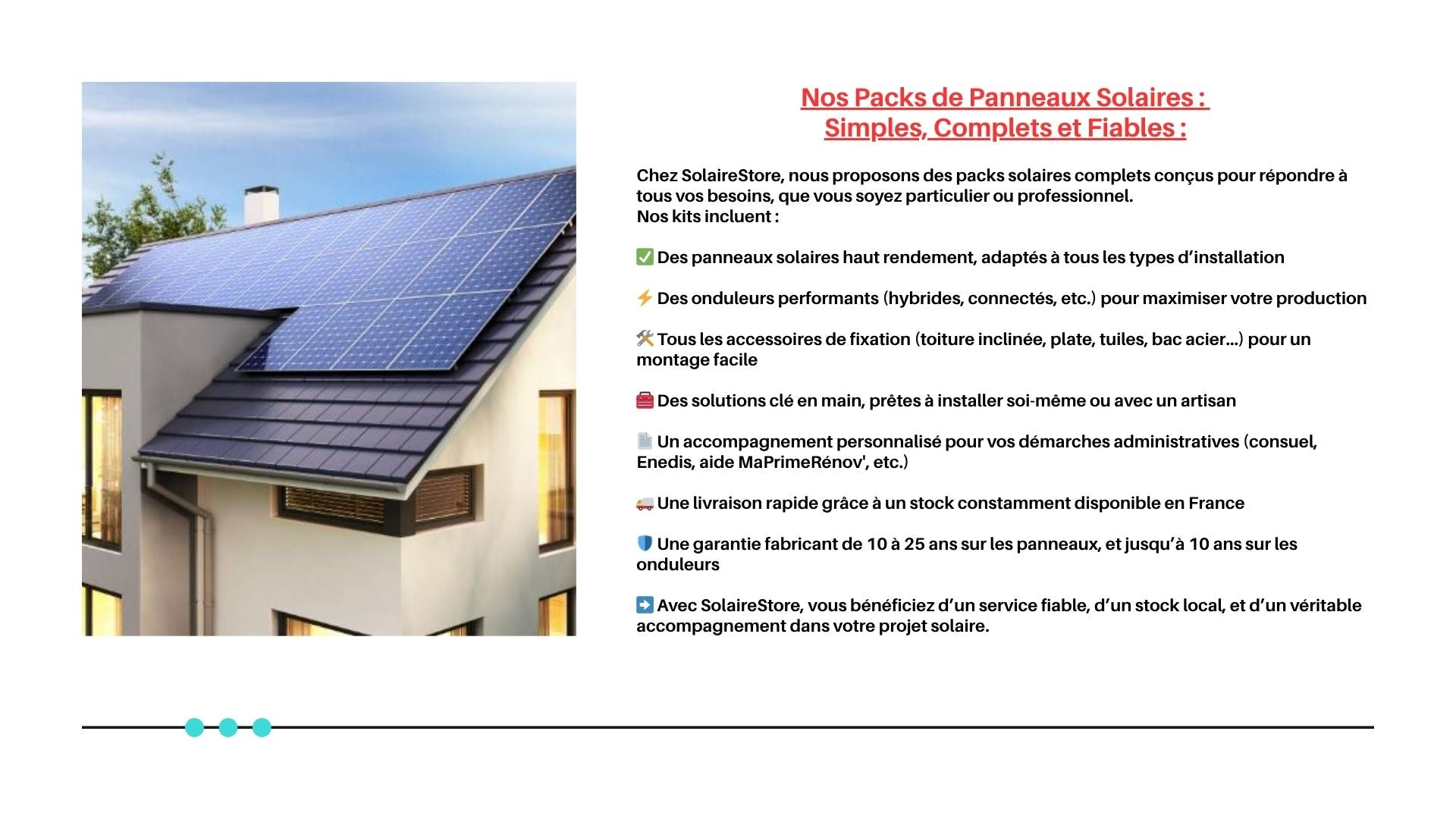 Avec SOLARSTORE.FR, vous bénéficiez d’une expertise de confiance pour vos achats en panneaux solaires et accessoires, avec des prix compétitifs, des délais de livraison rapides, et un soutien technique constant.